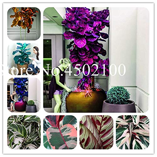 Bloom Green Co. 50 stuks Kleurrijke Ficus Lyrata Bonsai, coperta in Vaso Balcone Banyan Tree Foglia Bonsai Garden Piantare, Anti-radiazioni, purificare l’aria: 4